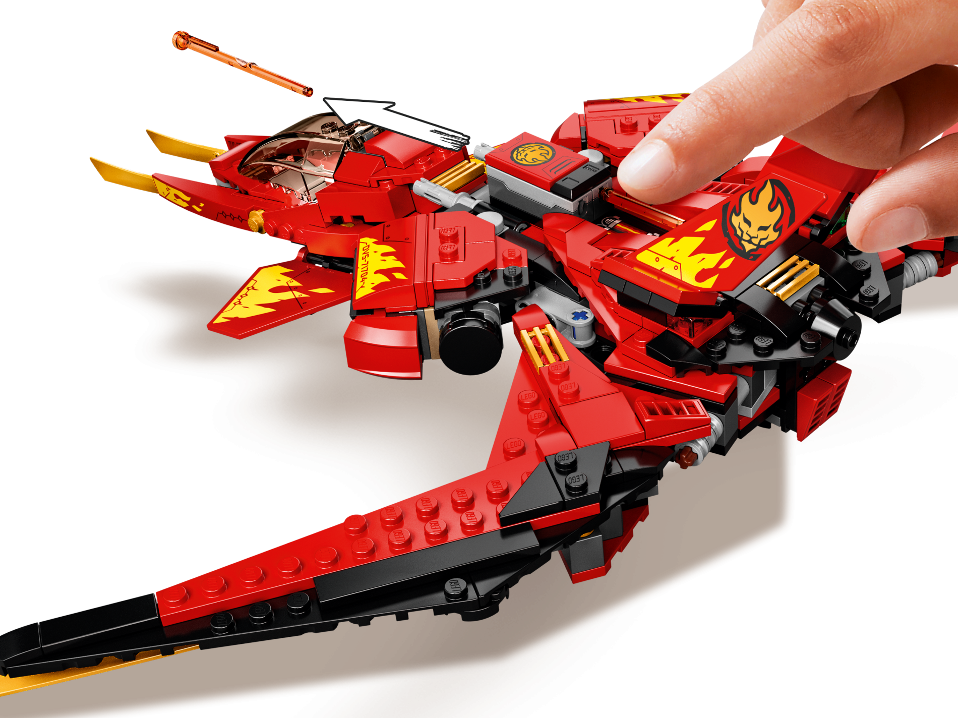| 1 X Tail Shuttle with Gold Lion Head in Black Circle and Yellow Flames on Red Background Pattern Model Left Side (Sticker) - Set 71704 | Red |   |  |