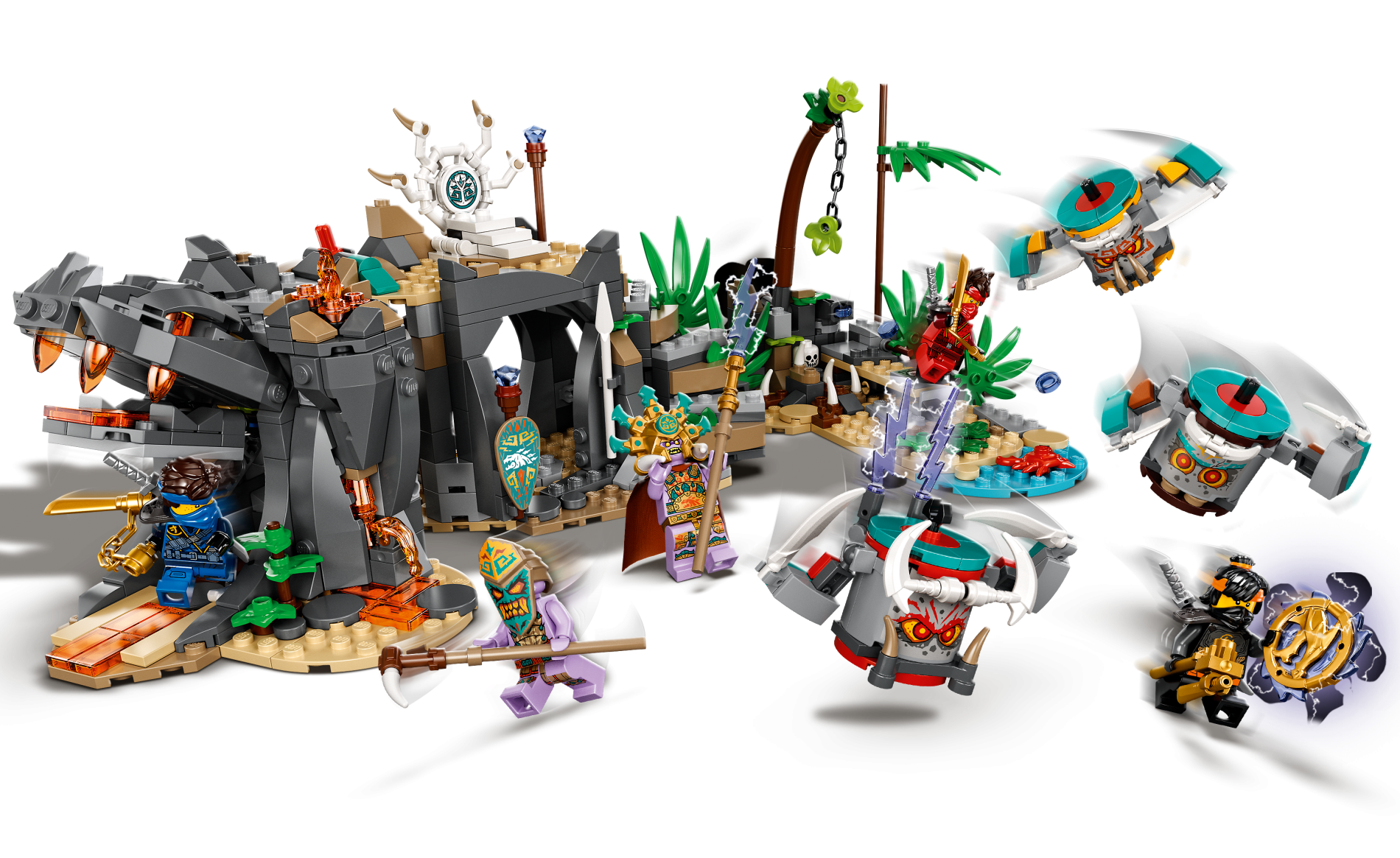 | 1 X Cylinder Half 2 x 4 x 2 with 1 x 2 Cutout with Stone Face with Red Eyes and Dark Turquoise Eyebrows Pattern (Sticker) - Set 71747 | Light Bluish Gray |   |  |