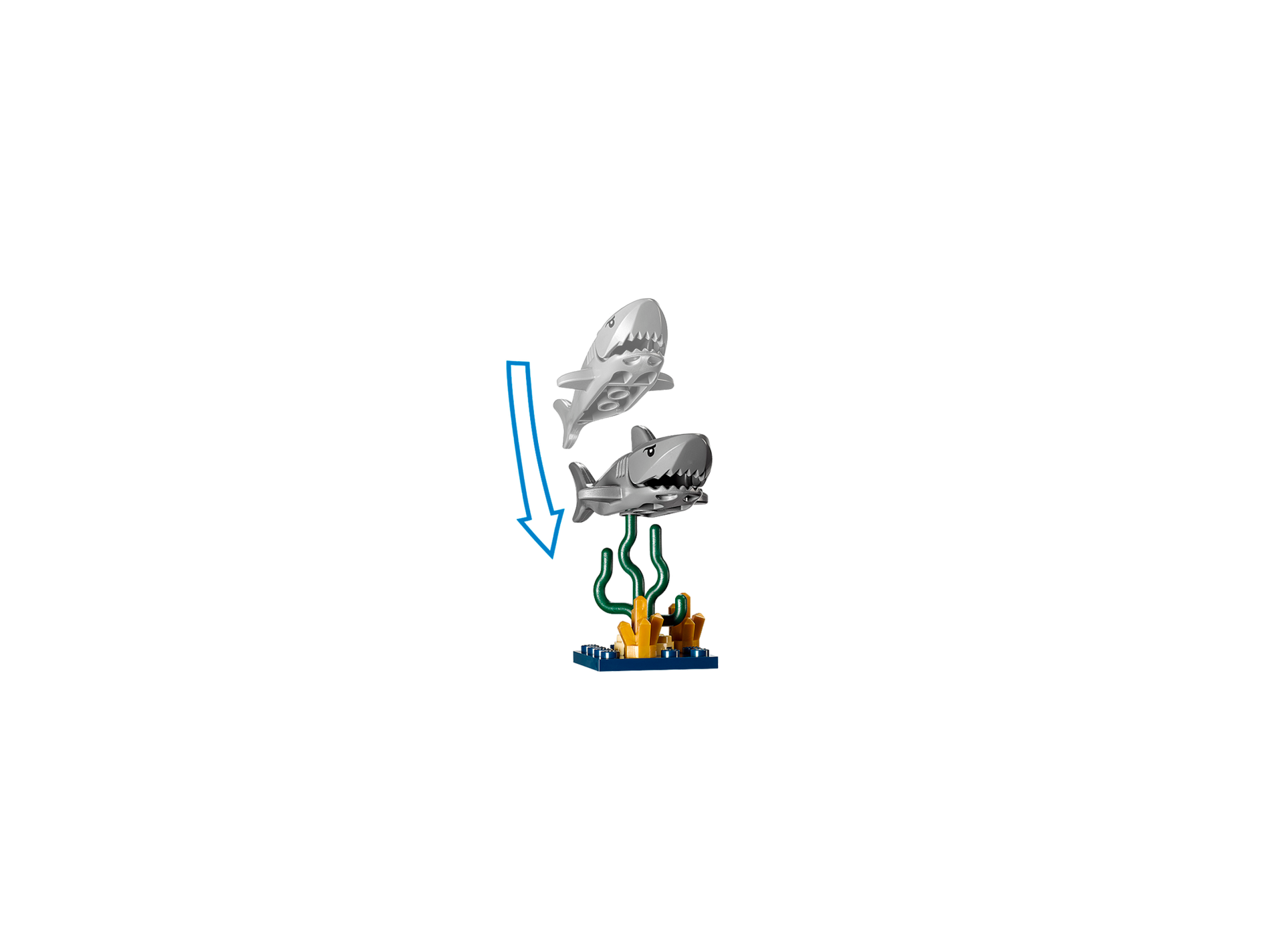 | 1 X Shark with Gills with Black Eyes and White Pupils Pattern - Complete Assembly | Dark Bluish Gray |   |  |
